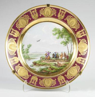 Plate "Falconry" - factory by Nikolai Langebraun (1877-1960)