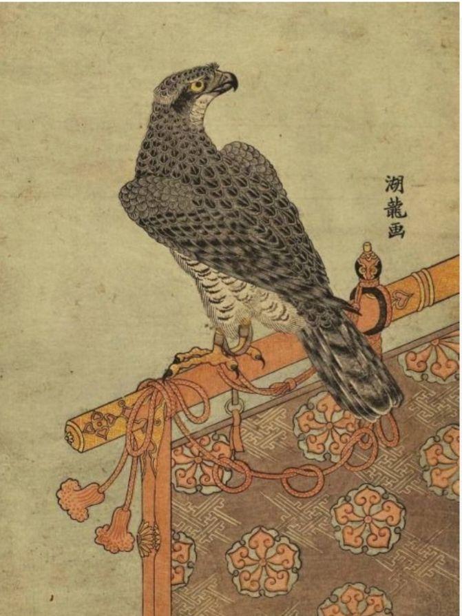 A Hawk on perch by Japanese Artist Isoda Koryüsai, circa 1780.