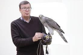 Russian ornithologist and falconer Dr Sergei Arkadievich Shurakov with Goshawk from Perm