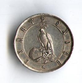 Russian medallion "Society of Falconers" of 1884 silver, diameter-27 mm, weight-11 g.