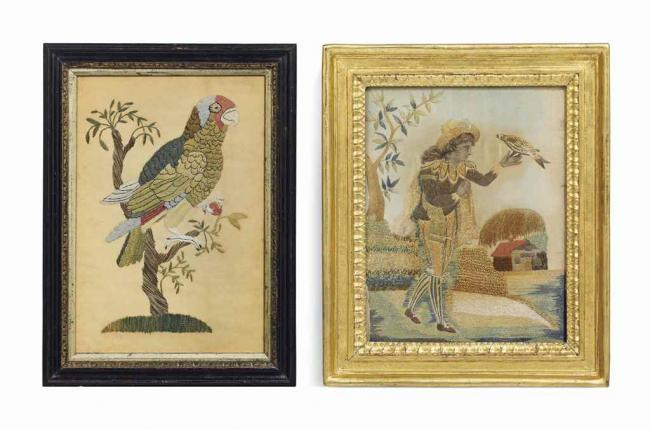 Silkwork picture of a young falconer, probably Italian, late 18th century
