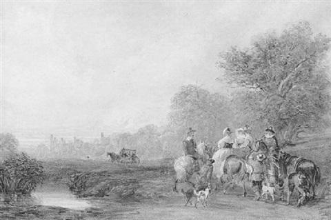 The hawking party by British artist Frederick (John Frederick) Tayler (1802–1889)