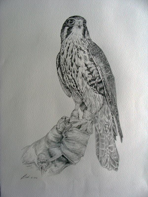 The New Zealand Falcon on glove - art by Ms Ineke Smets