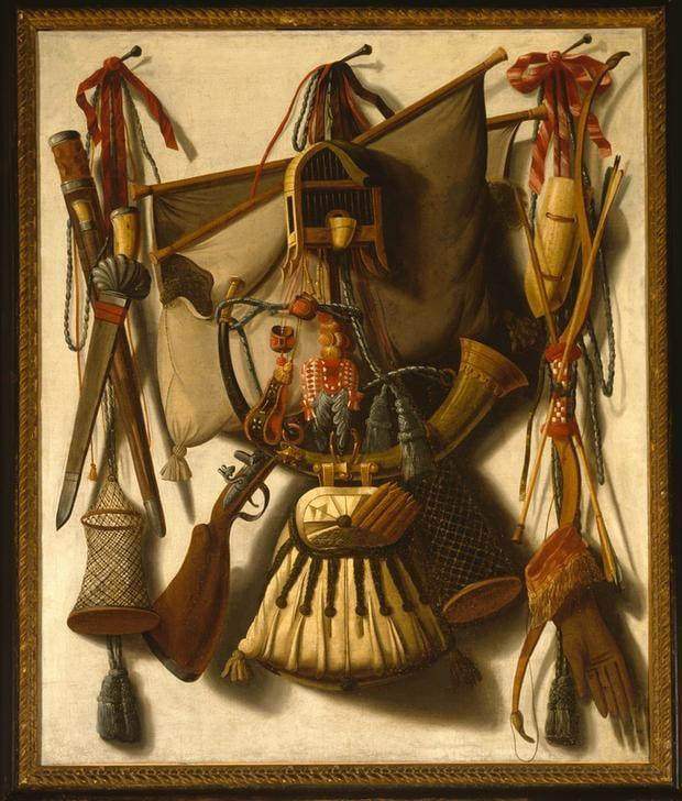 Trompe l'Oeil with Falconer's Bag and other Equipment for Falconry made in 1671