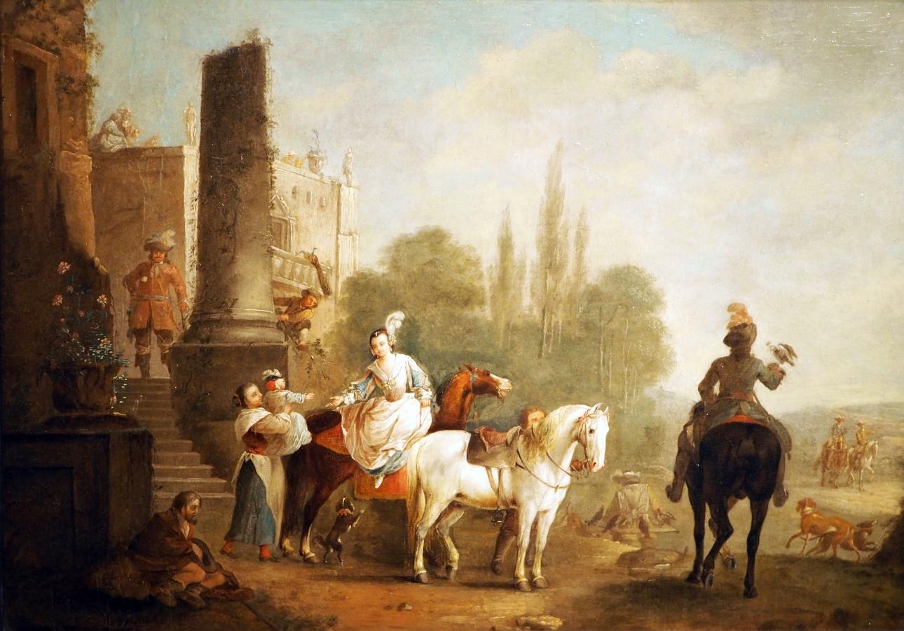Unknown artist. Departure for falconry. Cancas, oil. 48 x 74. 18 century.