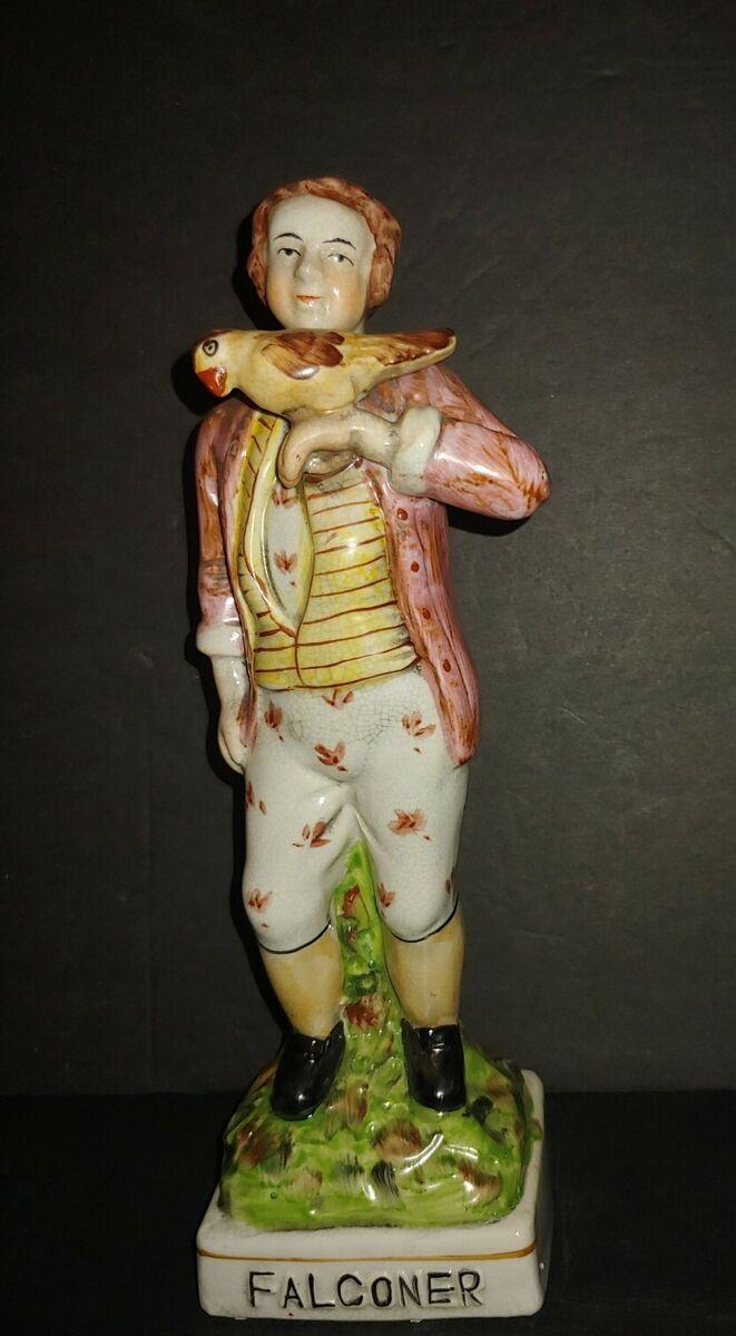 Vintage Style Falconer Man Figure With Falcon Figurine Statue Pottery Decorative