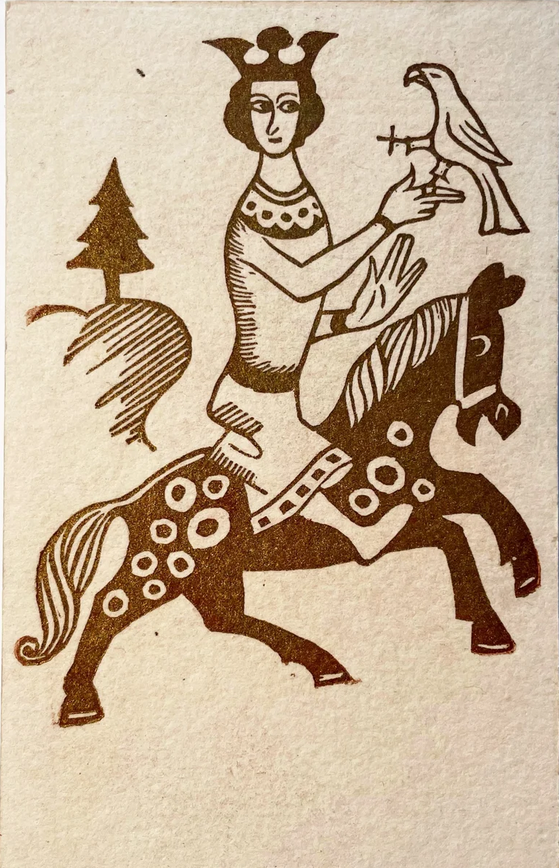 Vintage Print Postcard Medieval Swedish Woodcut King Falconer with Falcon
