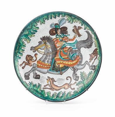 Wall plate - bowl ‘Falknerin’, Schleiss Gmunden, 3rd quarter 20th century