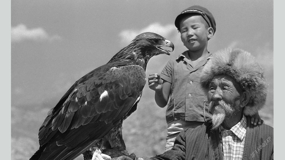 Well-known berkutchi A.Satylganov with young assistant in Issyk-Kul Region in Kyrgyzstan