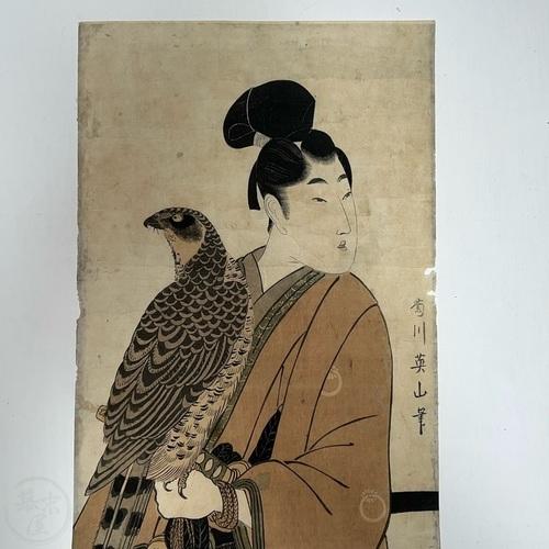 Woodblock Print of Falconer by Kikukawa Eizan (1787-1867)