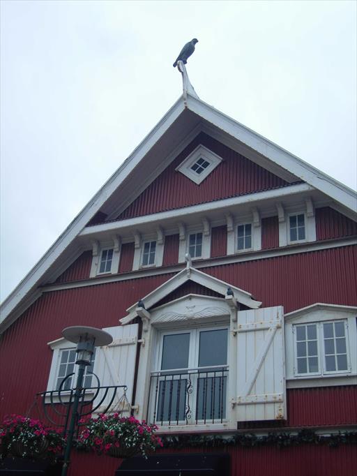 Two sculptures of gyrfalcons on Falkahusid (Falcon House) in Reykjavik, Iceland