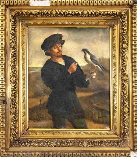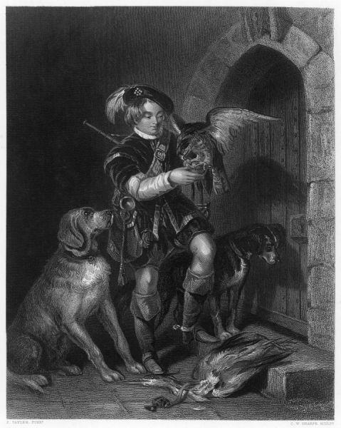 Young Falconer with Dogs by Frederick Taylor (1802-1889)