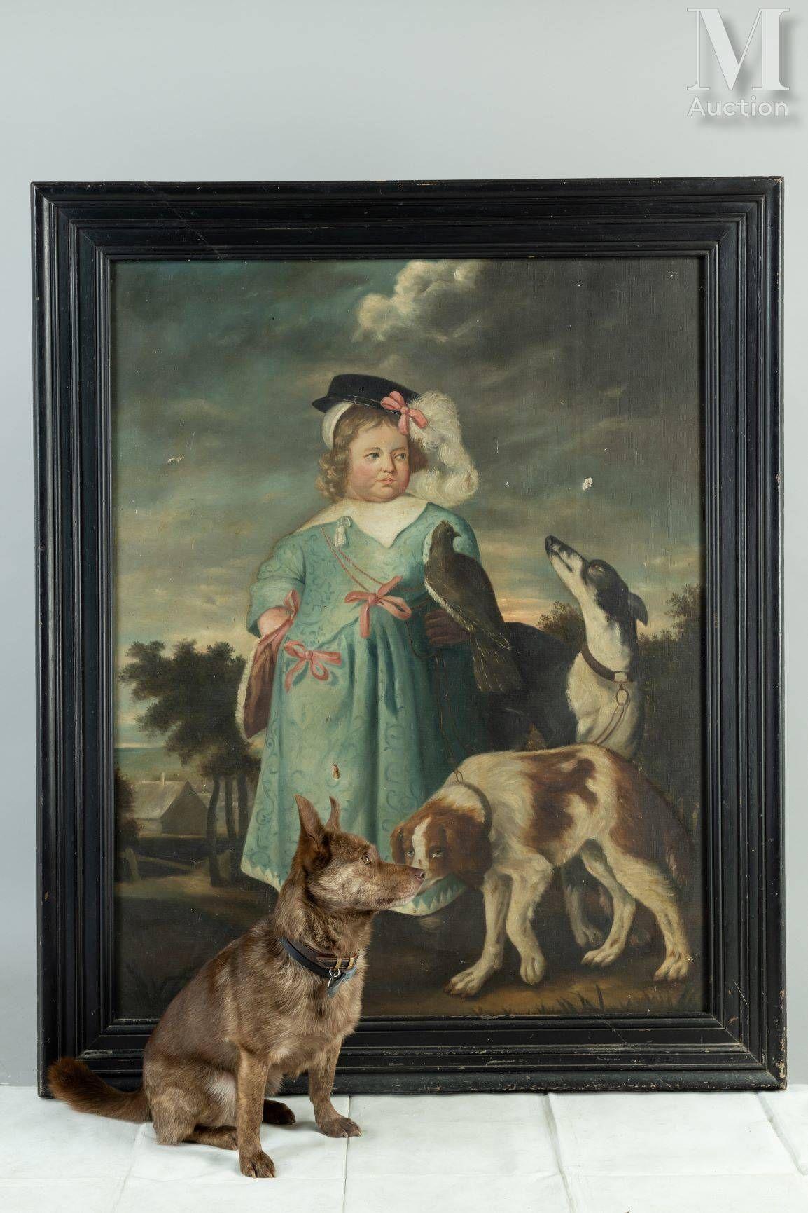 Young falconer with two sisters and a dog by Dutch artist Johannes van Noordt (1624-1676)