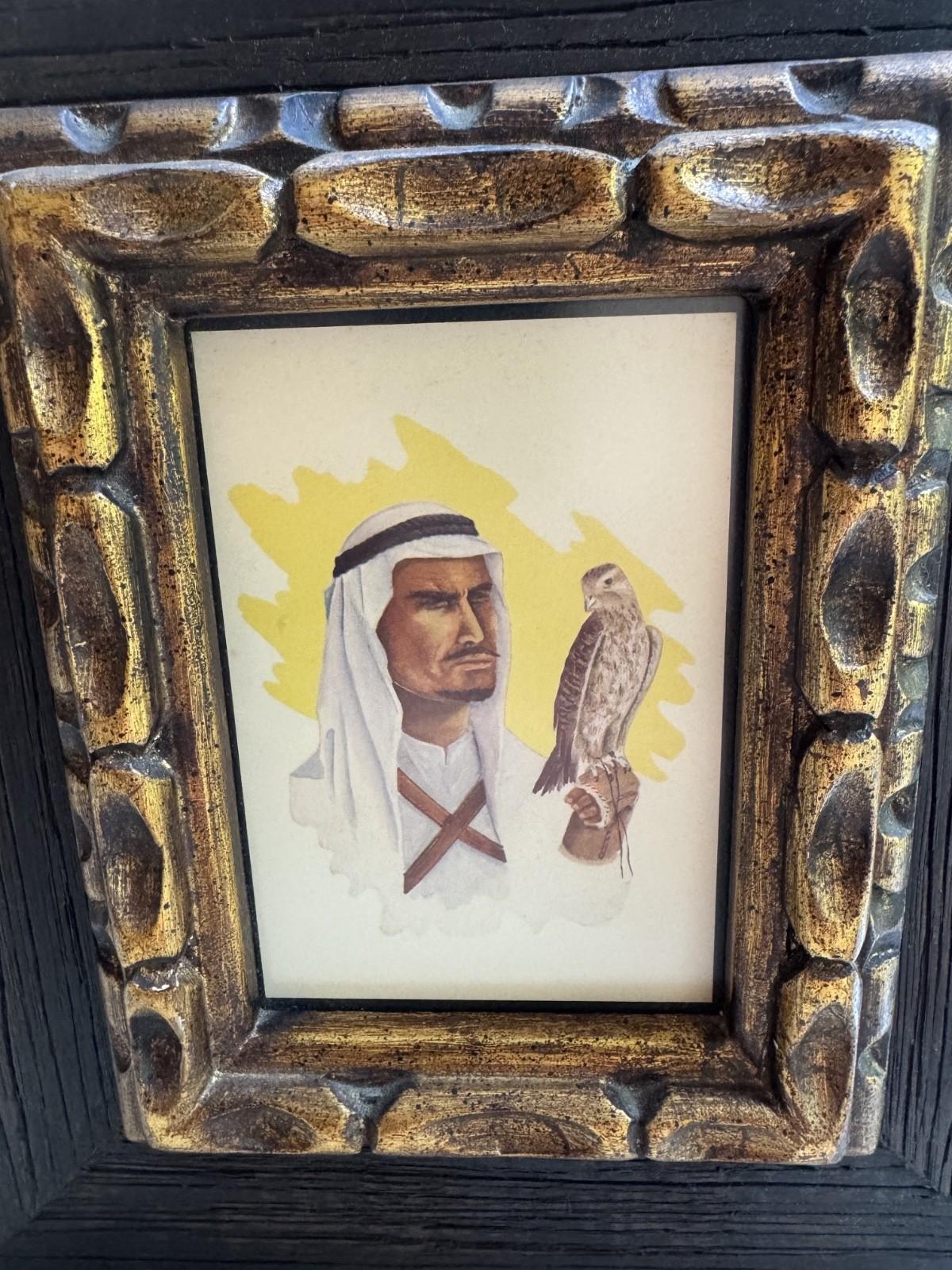 Vintage Saudi Arabian Falconer Gilt Wood Framed Art Picture Sheikh With Falcon